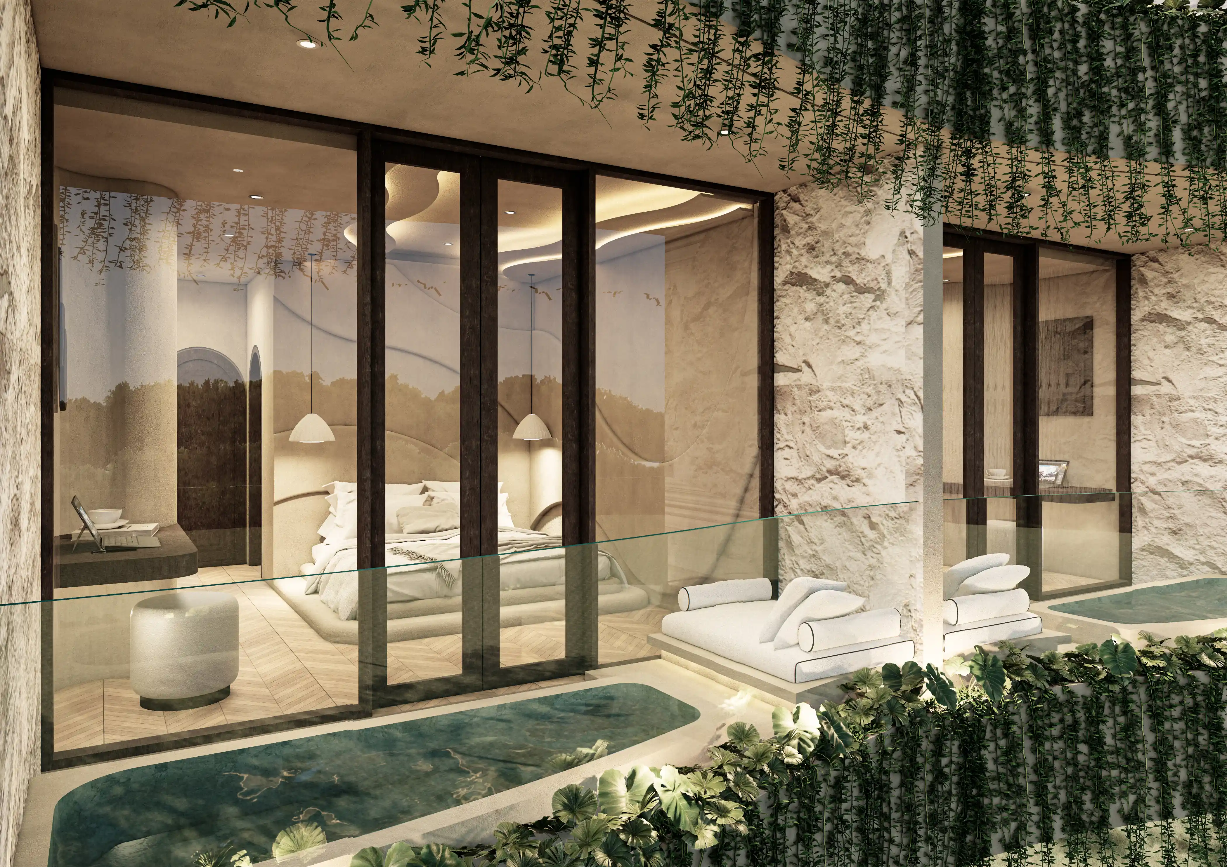 - Private pools, wellness facilities